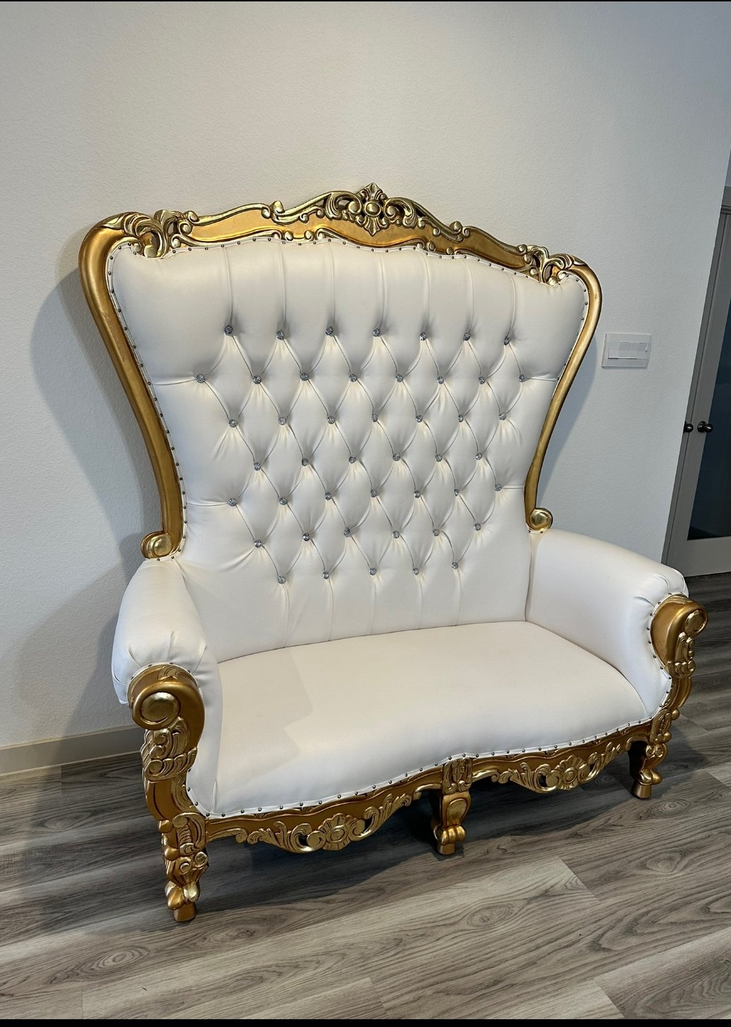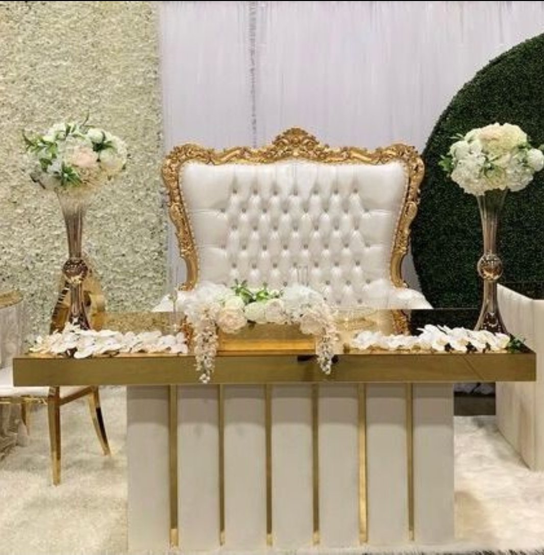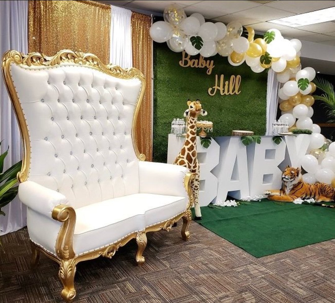 This throne chair is doubly majestic. The classic Rococo frame and luxurious padding are a brilliant way to recognize and venerate all who attend your event.